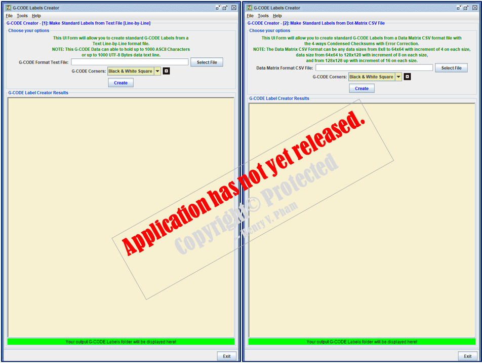 the GCODEUtility_v1.10 is provided for the users to use as a tool to generate product serial numbers and learn how to prepare the text data files before order GCODE Labels...